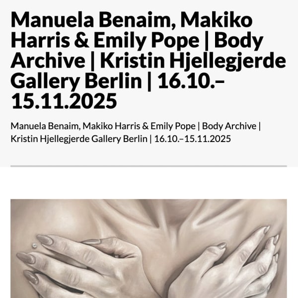 Manuela Benaim, Makiko Harris & Emily Pope | Body Archive | Kristin Hjellegjerde Gallery Berlin | 16.10.–15.11.2025